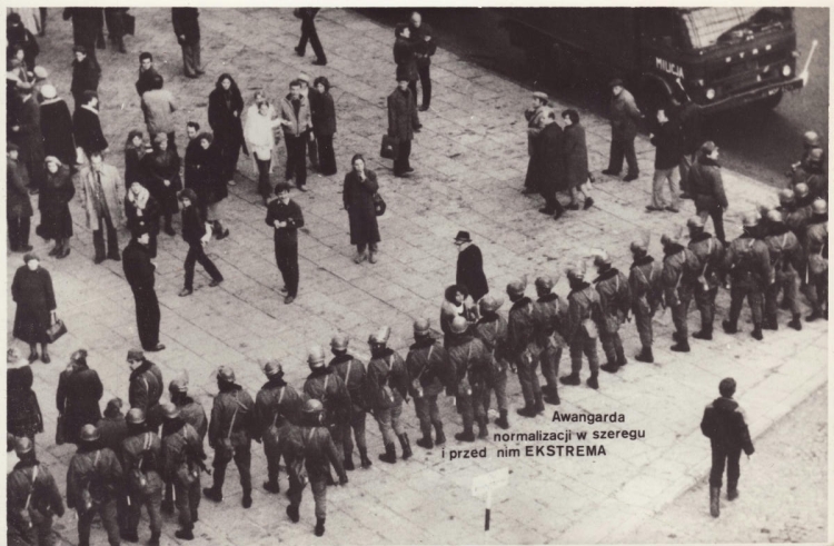 Photograph illegally distributed in 1982, documenting police action in Poland during the martial law of 1981–1983.