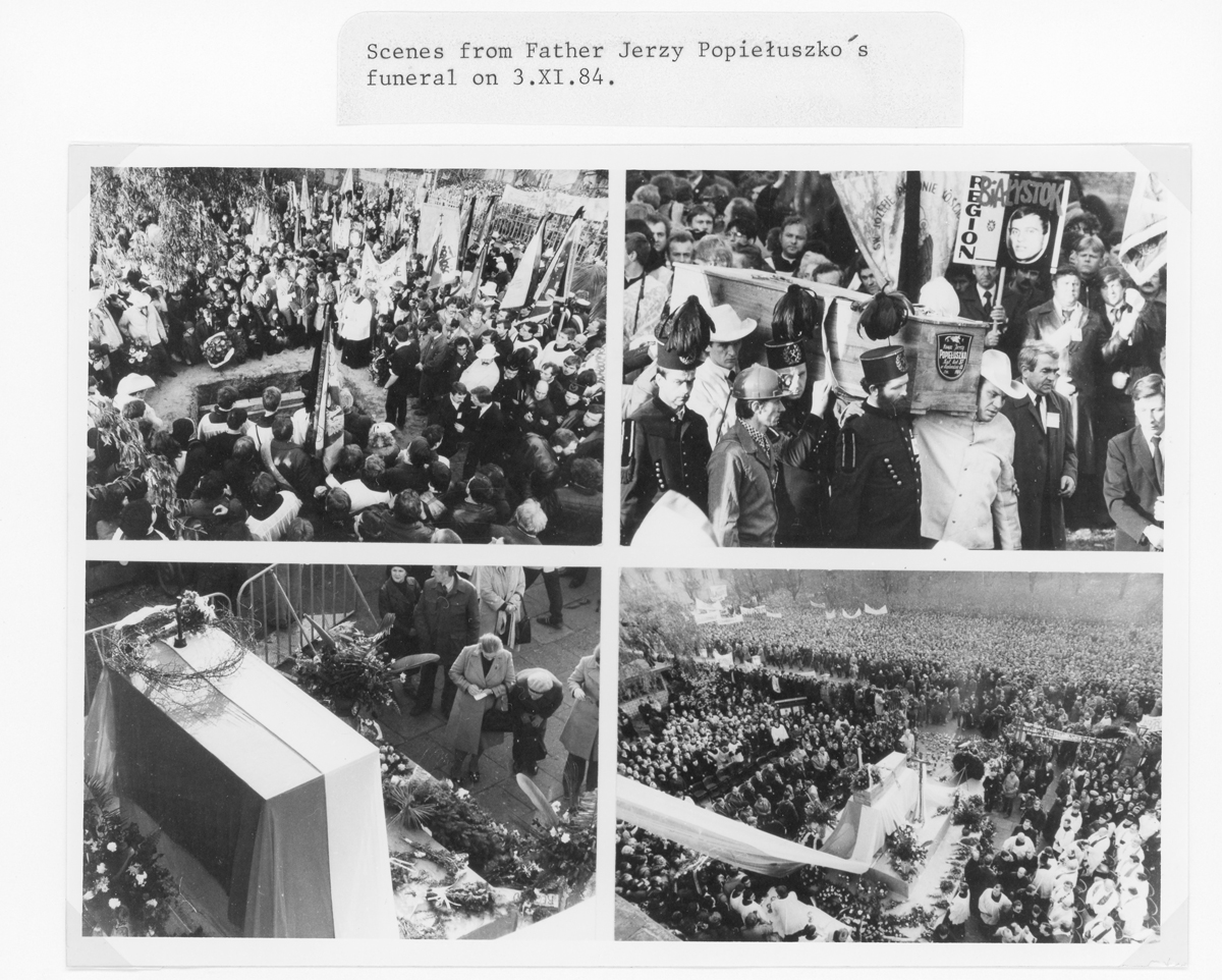 In an interview, Lech Wałęsa called the death of the Polish priest “the biggest shock since the martial law of December 13, 1981.” The incident also galvanized Solidarity—paralyzed since the martial law had been imposed a year and a half ago—and gave the organization an opportunity to demonstrate its strength. Although there were debates within Solidarity on how the mass movement should react to the news of the murder, in the end, a scenario of silent commemoration and calls for dialogue prevailed over that of open street demonstrations, strikes, and confrontation. This was in line with Popiełuszko’s aspirational views for conversation; in his last mass, for example, he prayed, “Let us pray to be freed from fear, from intimidation, but above all from the spirit of revenge and violence.”