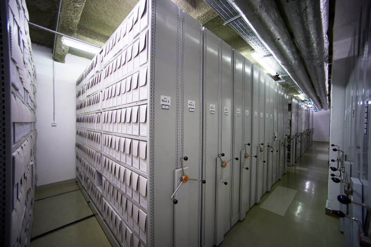 Archival holdings in the basement.