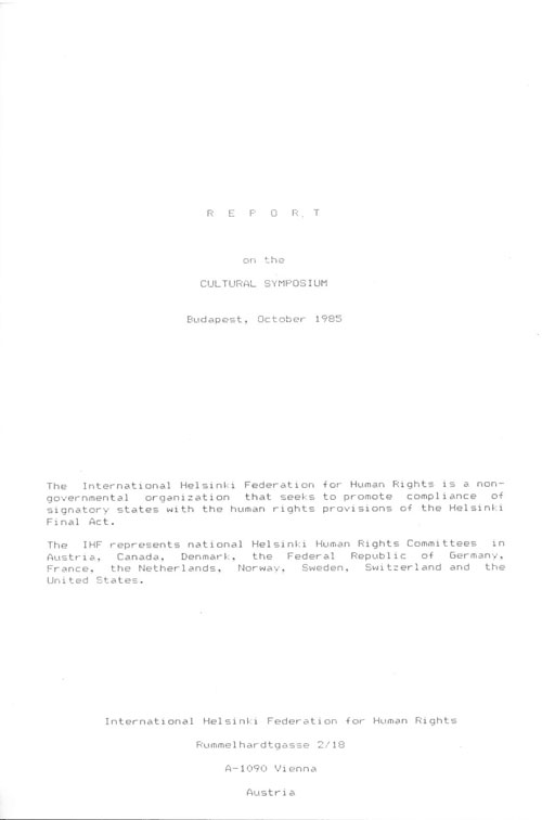 ![]() Cultural Symposium Budapest 1985 |