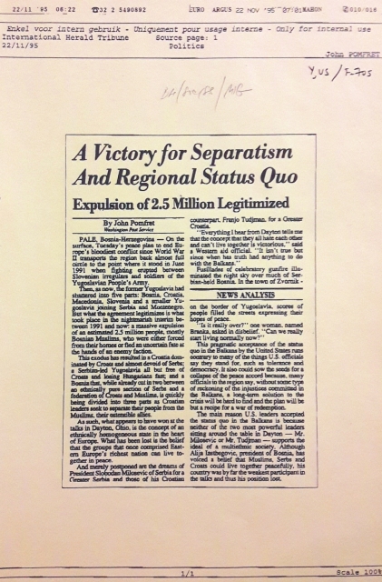 Bosnia Herzegovina Subject Files, 1992–1997 | News agency releases, press clippings, and publications on the recent history of Bosnia and Herzegovina from the moment of its international recognition as an independent state in 1992, through the devastating wars, to the Dayton Peace Agreement of 1995 and to the postwar reconstruction. Files cover the Srebrenica genocide, forcibly displaced people, military and security issues, privatization, unemployment, and the country’s strong ties to the US, EU, and NATO.