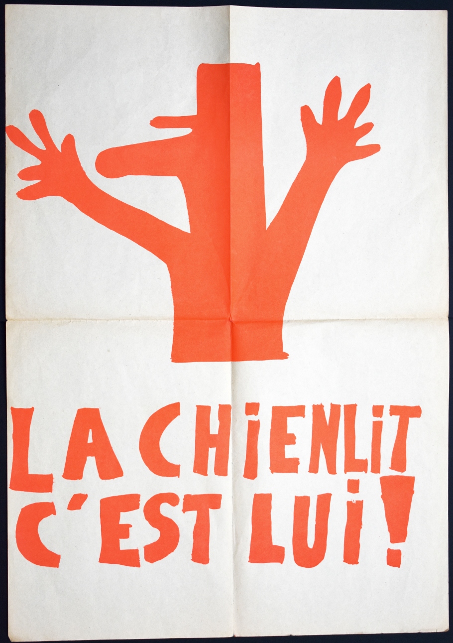 Or literally: "He is the bed shitter." One of the best-known posters retorts Charles de Gaulle’s criticism of students.