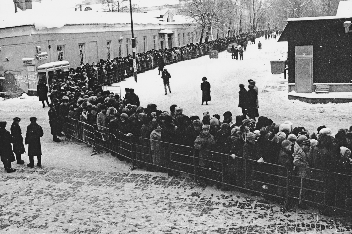 People queuing to pay their last respects to Sakharov on December 17, 1989. Photograph received by Radio Free Europe/Radio Liberty, and preserved at Blinken OSA.