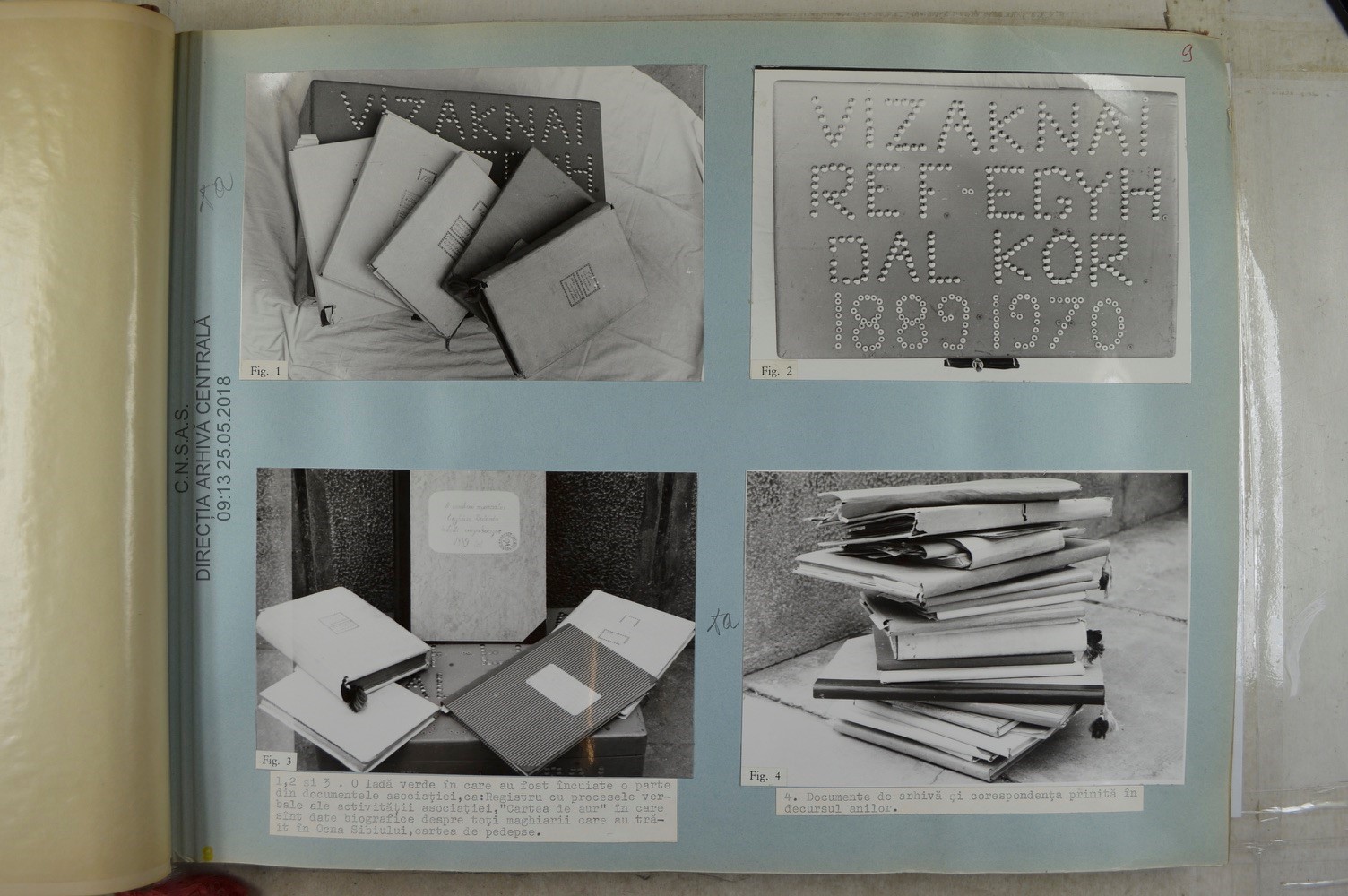 Secret police files were embodiments of the mistrust of regimes toward their citizens. In Communist Romania, the state considered ethnic minorities as a potential threat to the unity of the nation and the territorial integrity of the country. A secret police file of a Hungarian Calvinist Church choir from Vízakna (Ocna Sibiului), in the form of a photo album, was the product of this mistrust. Photo albums are one example of the many possible ways a case could be elaborated by the secret police, and they were often used to illustrate exemplary operations. Probably, officers also created them as a means to impress their superiors.