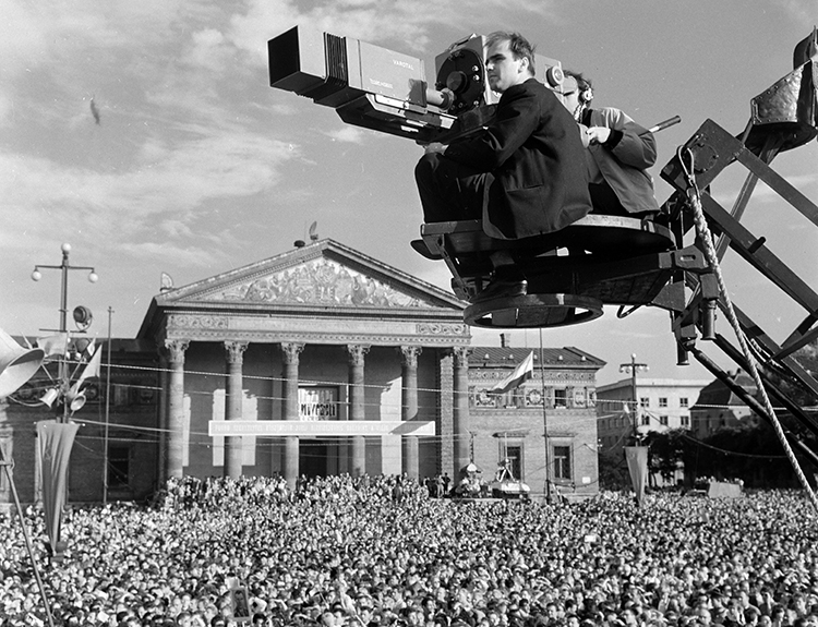 Hősök Square, cameraman above the people celebrating Gagarin.