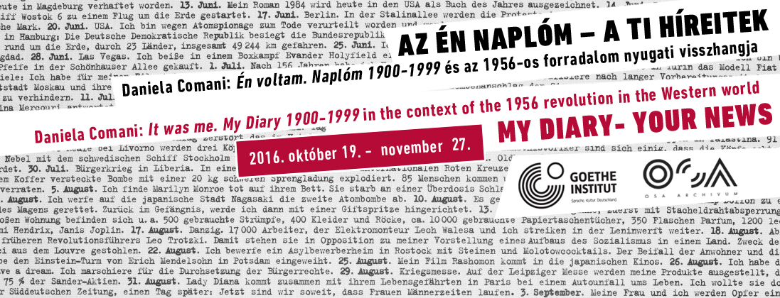 On the occasion of the 60th anniversary of the Hungarian Revolution of 1956, the Goethe-Institut Budapest, in cooperation with the Vera and Donald Blinken Open Society Archives, presents MY DIARY – YOUR NEWS. It was a deliberate decision to present the exhibition with a perspective that looks back at the days of the revolution from the outside. On one hand in time: the Berlin based Artist, Daniela Comani’s large size art installation entitled It was me depicts the whole of the 20th century through 365 entries of an imaginary diary, while constantly forcing the viewer to take the position of the principal actor. On the other hand we position ourselves outside Hungary to reflect upon the events of 60 years ago. How did the media in other capitals react to the events unfolding in Hungary? Alongside Daniela Comani’s installation, items from OSA’s own collections of newspaper clippings, photos and newsreels document the intensity of reactions all over the world, from Reykjavík to Buenos Aires.