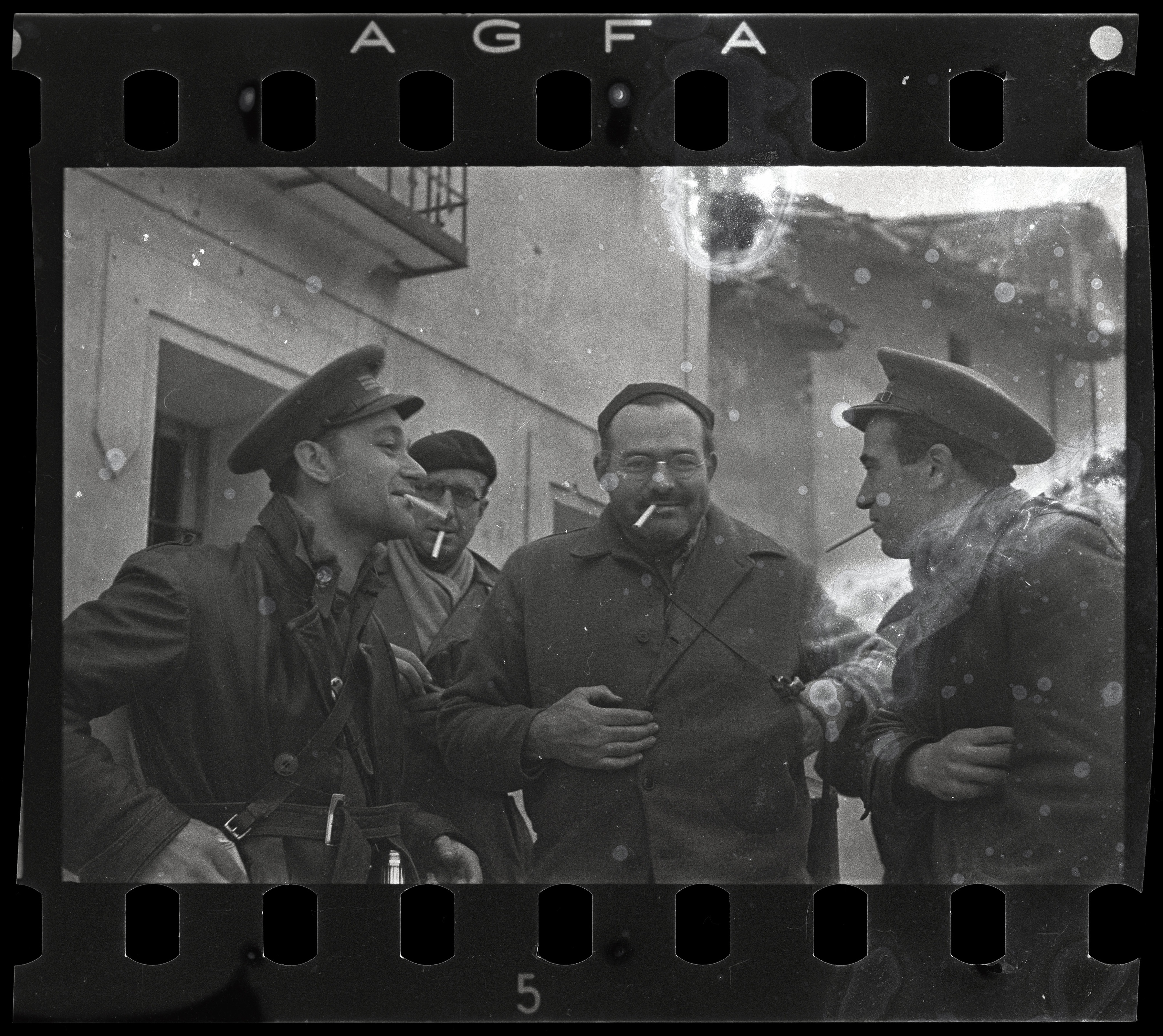 Photo credit: Robert Capa: [Ernest Hemingway (third from the left), New York Times journalist Herbert Matthews (second from the left) and two Republican soldiers, Teruel, Spain], late December 1937 © International Center of Photography / Magnum Photo Collection International Center of Photography