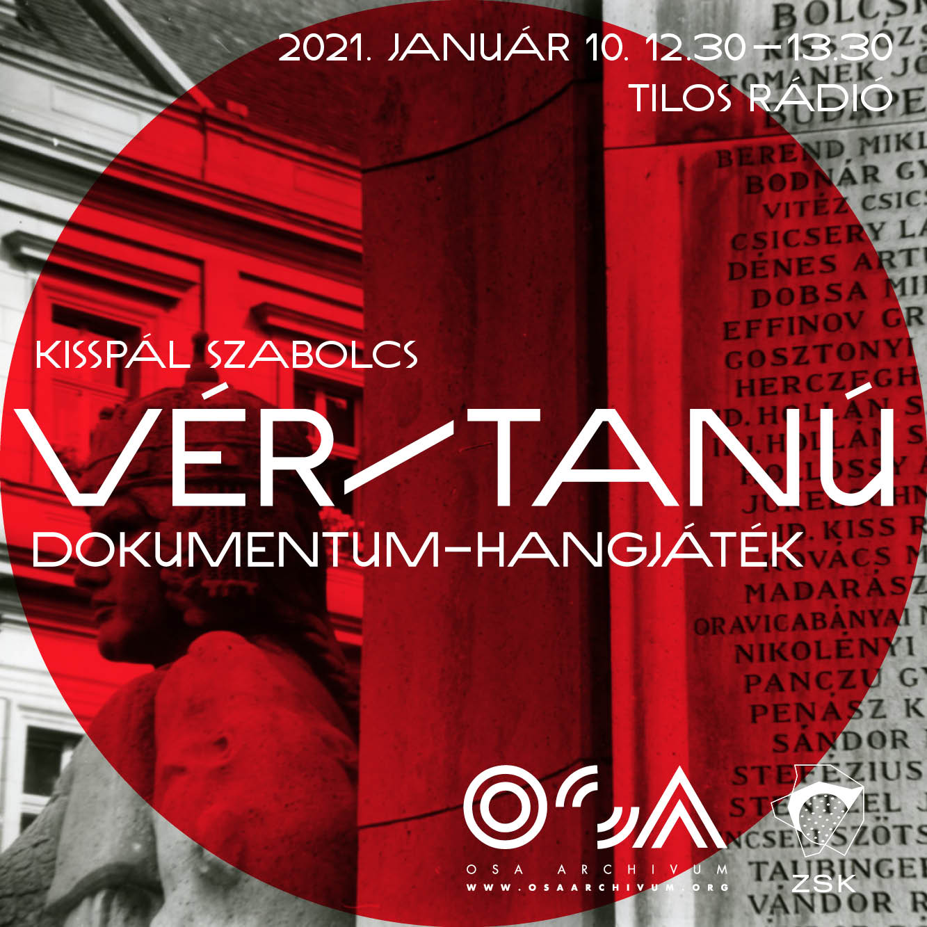 The events that took place hundred years ago are still leading to sharp, heated debates: which events do we consider national tragedies from the turn of the 1910s and 1920s? Whom do we consider victims to be emphasized as mementos for the collective memory? Whose blood was spilling from, so to say, the wounds of the nation? The documentary radio play by Szabolcs KissPál explores this issue through, on the one hand, the microhistories of the everyman of the era—the Jewish victims of the Red and White Terror—, and, on the other, through the great national narrative—the history of the Monument of National Martyrs, inaugurated in 1934, toppled in 1945, and reconstructed in 2019.