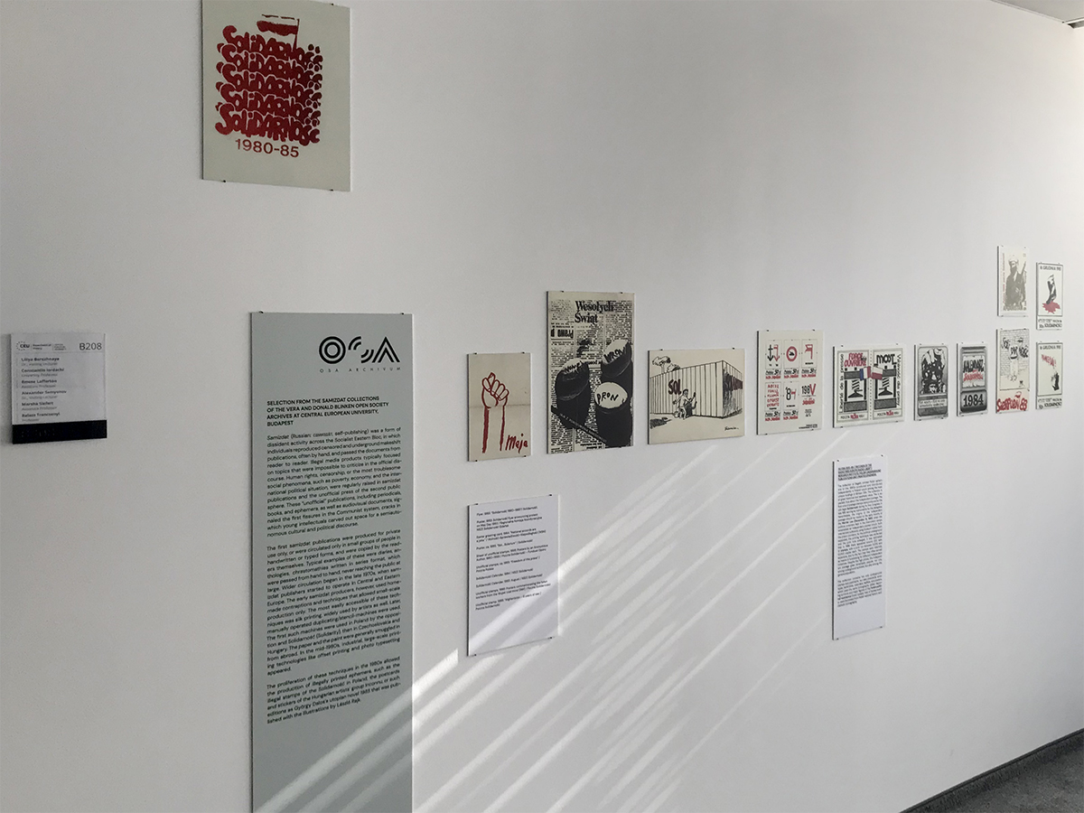 The chosen walls of CEU Library and the Media Hub are decorated with a selection of Hungarian film posters from the 1960s and 1970s, visually attractive covers of landmark samizdat publications, and photos from the Radio Free Europe/Radio Liberty Research Institute collection.