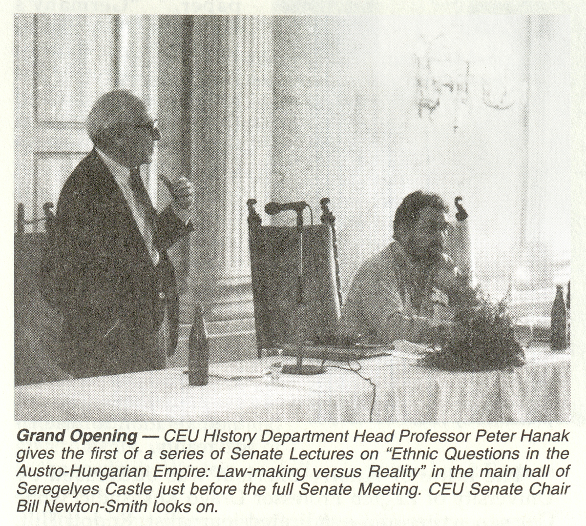 Péter Hanák with Bill Newton-Smith (who passed away recently) in the fall 1993/94 issue of the CEU Gazette.